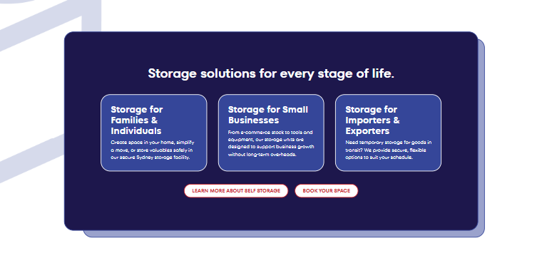 I create modern, conversion-focused websites for self storage businesses, combining clean design with clear and reassuring communication. For Palmers Self Storage, I built a professional site for a family-owned Sydney facility trusted for over 45 years. The site highlights their complete range of storage solutions including personal and household storage, small business storage, and importer and exporter storage, with units starting from $100. It features a responsive layout, a free quote request form, unit size guide, structured service pages, and a step-by-step booking process, all designed to build trust and drive bookings. Each section is crafted to guide visitors toward securing their storage space, with key trust signals such as 24/7 CCTV, gated access, flexible rental terms, and contact information presented clearly to convert visitors into confident, long-term customers.